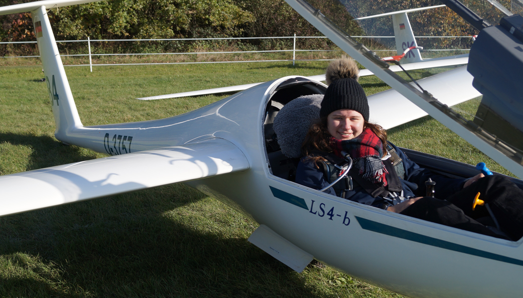 ![]() Betreuerin Sarah Hildebrand hatte die Gelegenheit einmal mit zu fliegen - Pilotin Samira Schwaninger nimmt sie mit |