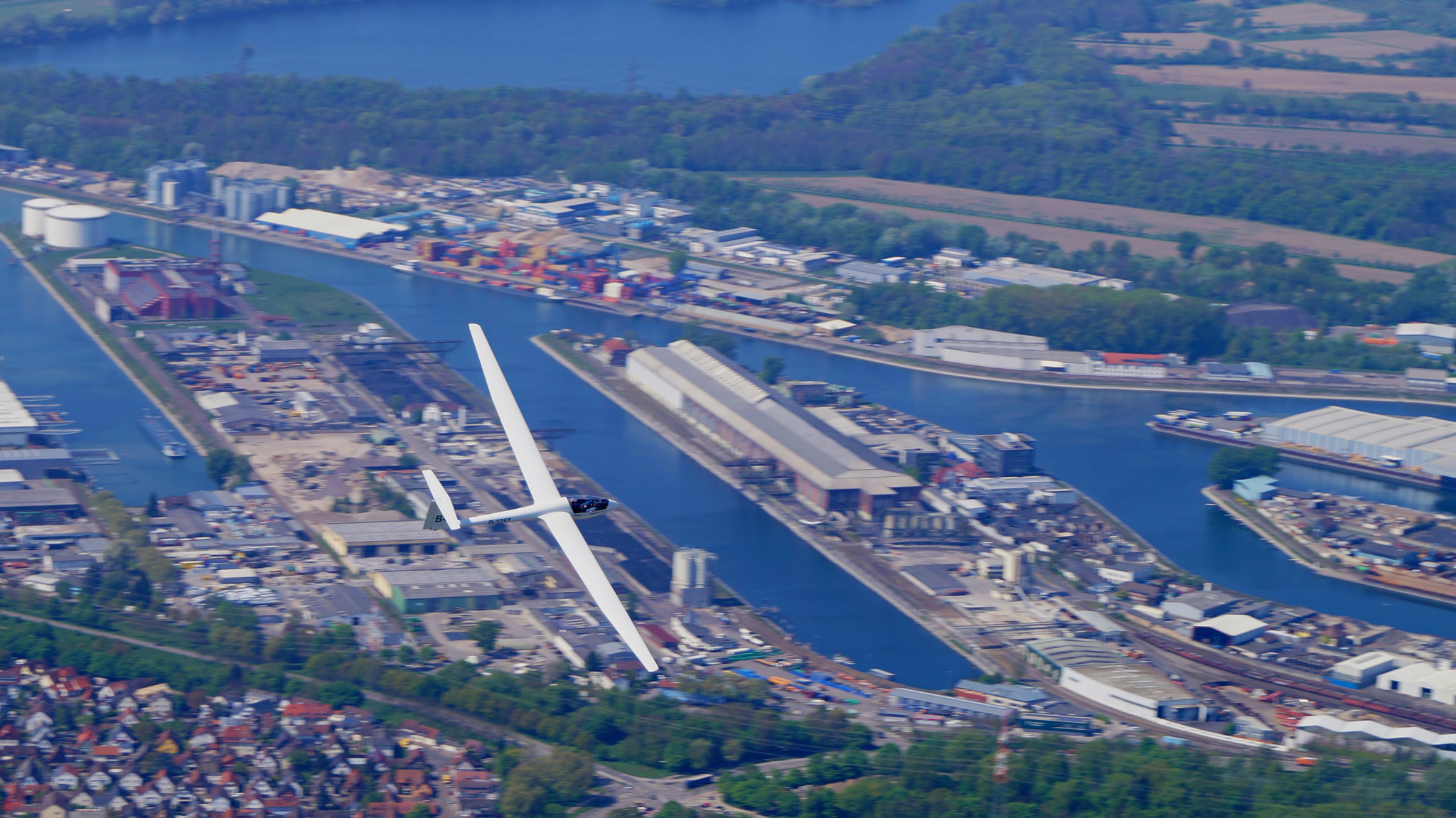 ![]() Flugschülerin Samira S. über dem Karlsruher Rheinhafen |