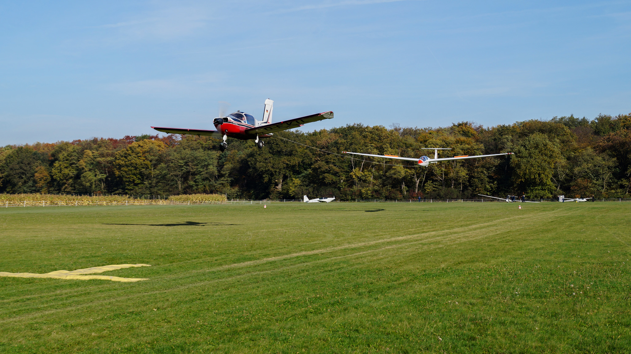 ![]() Ein seltenes Manöver zum Training: Eine Landung im F-Schlepp |