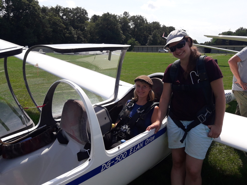 ![]() Betreuerin Sarah Hildebrand hatte die Gelegenheit einmal mit zu fliegen - Pilotin Samira Schwaninger nimmt sie mit |