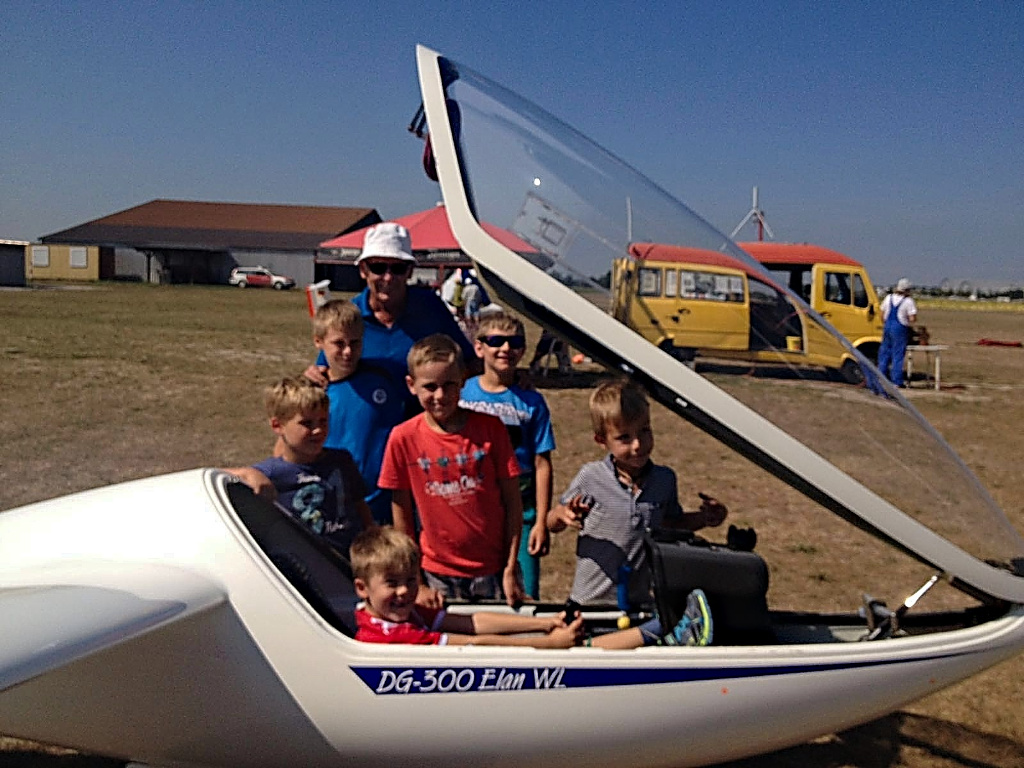 Neben den Flugzeugen in der Halle konnten sie natürlich auch viele Segelflugzeuge starten und landen sehen. Danach kam der Höhepunkt: Jeder von ihnen durfte sich ins Cockpit eines echten Segelflugzeugs setzen. Ganz schön eng da drinnen, aber trotzdem bequem. Nebenbei erklärte Rolf alle Instrumente und Steuereinheiten, die man zum Fliegen braucht. Später wurde vor dem Clubhaus noch lecker gegrillt und auf dem Rückweg gab es noch ein Eis bei der Eis Oma. Ein toller Ferientag für die Kinder des Schülerhortes und ein willkommener Besuch beim FSV!